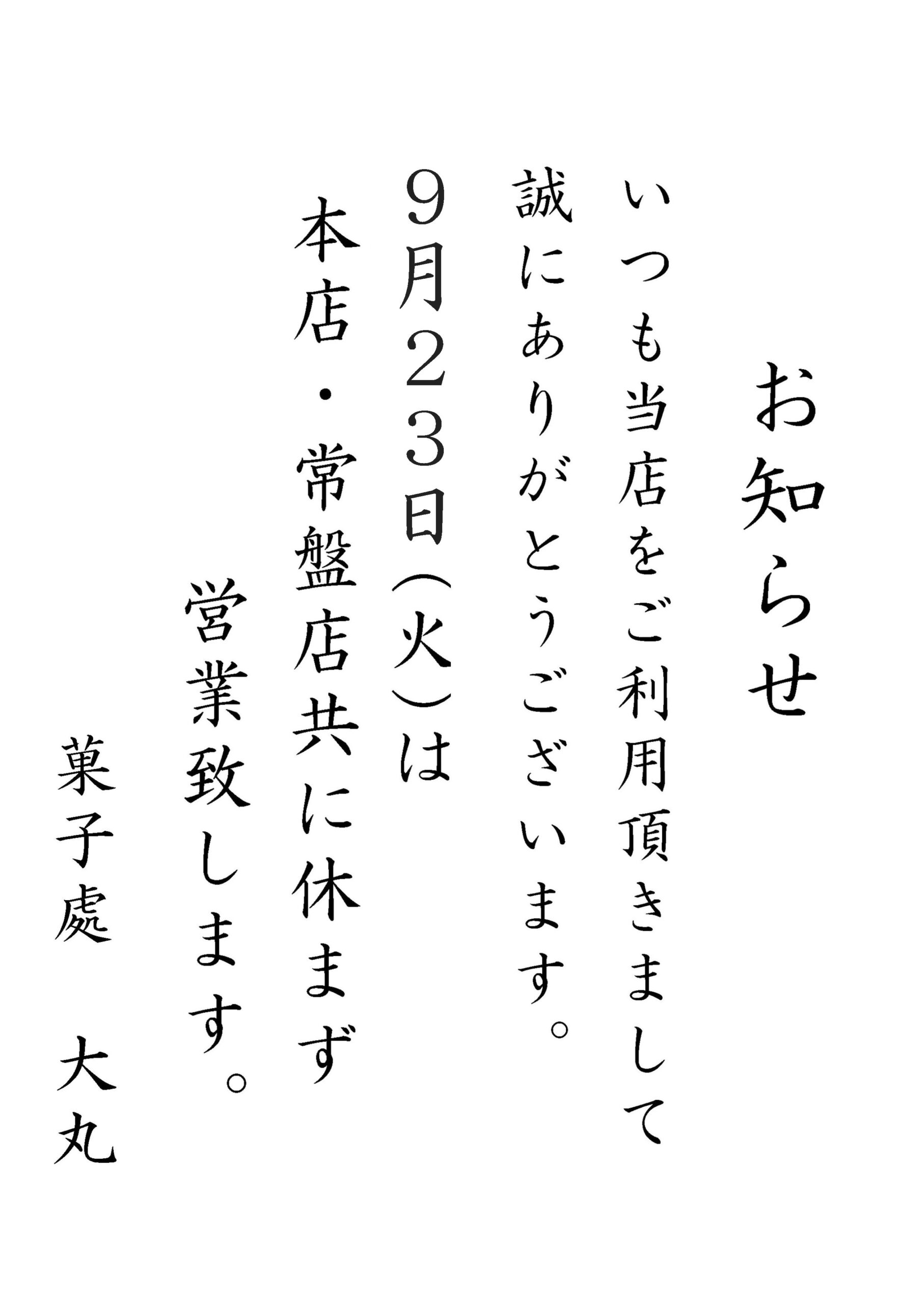 9月営業の知らせ