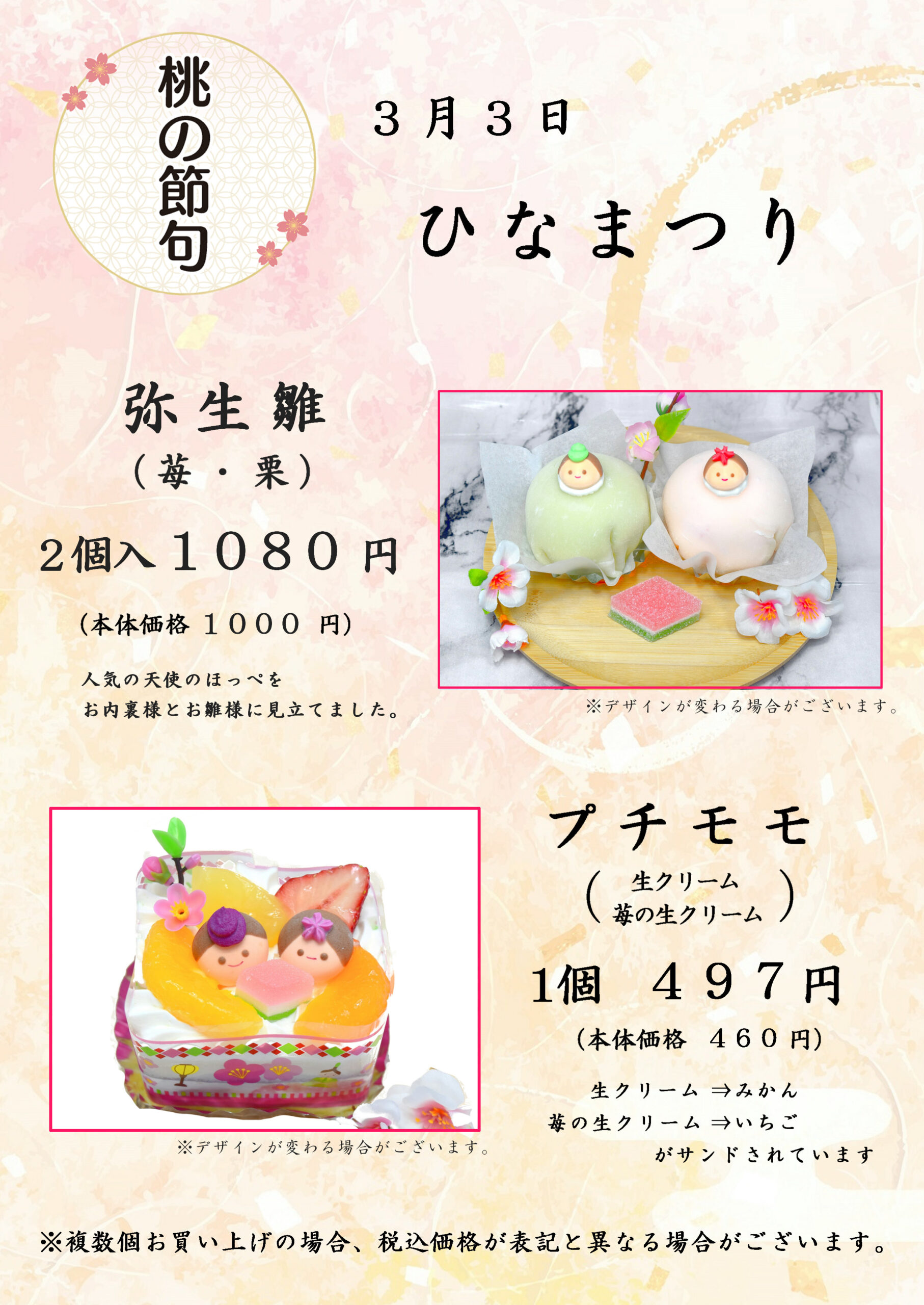 ひなまつり限定商品「プチモモ」「弥生雛」25日より販売予定