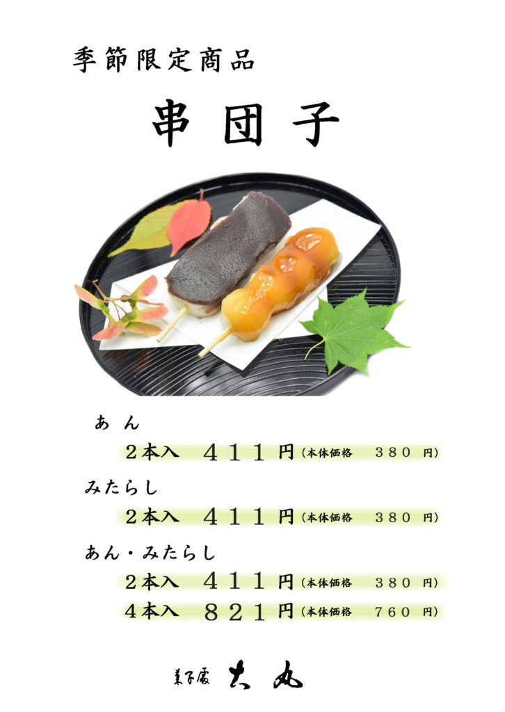 季節限定商品「串だんご」10月16日より販売【11月17日まで予定】